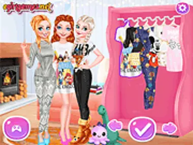 Принцессы проводят выходные в домике в горах. Место спрятано в лесу, и повсюду снег, а вдобавок ко всему, светит солнце! Это идеальная погода для фотографии на улице перед домиком. Но несмотря на солнце, на улице холодно, поэтому девушки проведут день дома перед камином, попивая горячий шоколад со сливками. Им нужно найти идеальный уютный и милый наряд для этого случая, поэтому помоги девушкам нарядиться и создать для них милые прически. Не забудь приготовить и их напитки! Веселись!