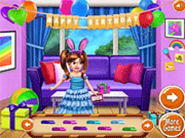 Сегодня день рождения Эрики, и она готовится к празднику! Помоги нашей малышке-принцессе украсить комнату к её дню рождения шариками, подарками и многими другими праздничными украшениями, а затем ты сможешь выбрать для неё красивые платья и аксессуары! Приятной игры в Baby Princess Birthday Party.