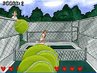 Order in the court! Actually, there's no order in this court. None whatsoever. The tennis balls are flying fast and furious in Court Chaos. Use your mad tennis "skillz," dill-weed, and send them back at those tennis-playing cornholios. Everyone in the country club is after you. Survive their evil tennis onslaught!