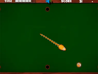 Бильярдная Змейка – Управляйте своей змейкой по бильярдному столу с помощью клавиш со стрелками, ешьте красные точки, но избегайте черных дыр. Съешьте как можно больше красных точек и следите за полосой времени в левом верхнем углу. Если время истечет до того, как вы съедите красную точку, игра будет окончена. Отправьте свой результат, когда закончите.