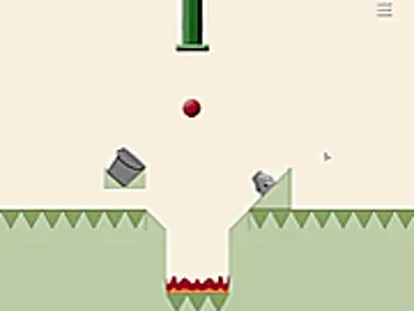 Launch two balls at different times to ricochet the correct one into the bucket.