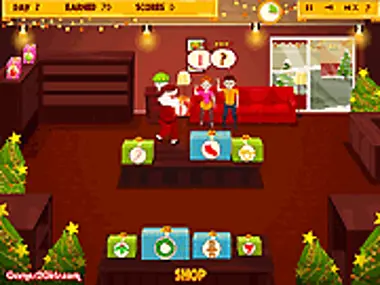 Рождество не за горами, а самое лучшее в празднике — это подарки! Санта только что открыл новый магазин в центре города, и он уже полон покупателей. Давай заглянем туда и поможем Санте в эти хлопотные дни. Узнай, что хотят твои покупатели, и выдавай их подарки вовремя. Ты можешь улучшать свой магазин, зарабатывая деньги, и делать своих покупателей счастливее!