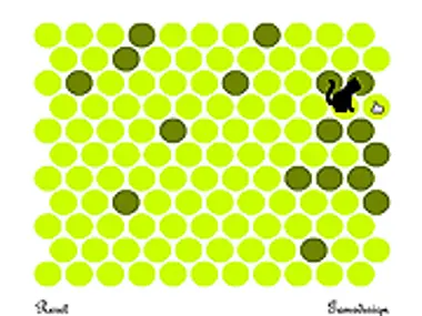 Ваша цель — поймать кота, преграждая ему путь по точкам. Ваш ход даёт коту возможность сделать свой ход, поэтому найдите способ окружить кота и не дать ему сбежать.
