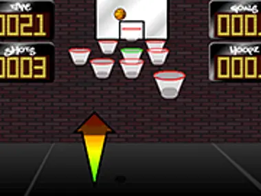 Try to shoot the basketball into all the hoops on the screen. You have unlimited tries.