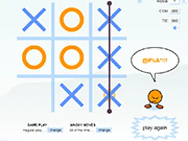 Crosses-zeros is a tic-tac-toe inspired game with a twist. You can choose the difficulty between never, sometimes, or all of the time.