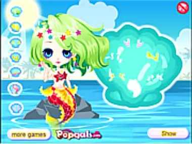 Милая маленькая принцесса-русалка живёт в глубинах океана! Помоги этой милой маленькой принцессе-русалке выглядеть супер-мило! Выбери лучшую причёску, самые милые платья для твоей принцессы-русалки! Веселись!