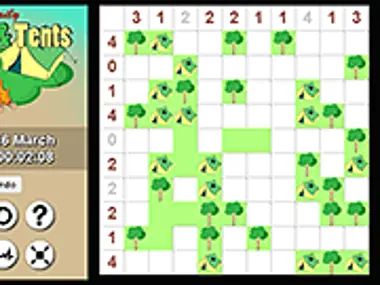 Daily classic logic puzzle game where you have to place Tents next to Trees. Read the in-game help for all the rules.