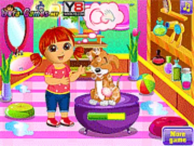 Дора — любительница животных. У нее два очень милых щенка. Теперь давайте поможем Доре позаботиться о них. Выберите щенка, который вам нравится, затем искупайте его, а затем нарядите. Наслаждайтесь игрой «Дора: Уход за щенками».