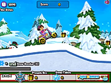Наступила зима, и она вовсю хозяйничает на улице. Вся округа покрыта снегом. Это отличное время для Доры, чтобы прокатиться на своем велосипеде и совершить приятную поездку по дороге. Помоги Доре на велосипеде добраться до места назначения, не упав с него.