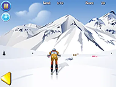 Downhill ski winter game. Move left and right and avoid all obstacles.