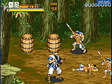 This is an old school Japanese game. You have to use the arrow keys to control your fighter. I just went crazy hitting the arrow keys and started kicking butt.