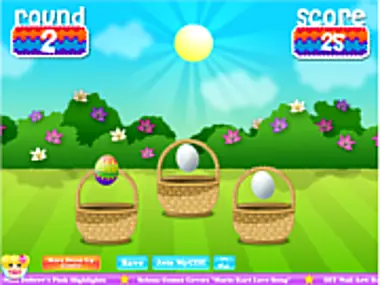 Watch the animations and find the basket that is hiding the colored egg! Click the Easter bunny for extra points!