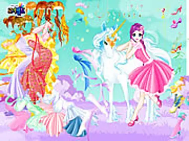 The fairy is preparing to go for a walk with her unicorn but she doesn't know what dress she should wear. Can you help her?