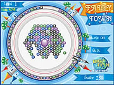 Protect the fey kingdom by firing colorful spheres into matching orbs on the battle disc in this prismatically pleasing arcade game! Match the colored balls in groups of three or more to vaporize them in your quest to reach the core of Fairy Town. Work quickly though, you only have limited time, and a finite artillery cache.