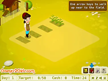 Вам нужно присмотреть за кукурузной фермой вашего дяди, пока его нет в городе. Сажайте семена и наблюдайте, как растут кукурузные поля! Вы можете купить удобрения и добавки, чтобы они росли быстрее. Остерегайтесь птичьих атак, так как они могут съесть весь ваш урожай! Вы можете купить пугала, чтобы отпугнуть их, или можете прогнать их сами. Удачи!
