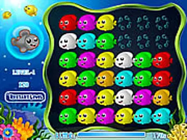Click and drag rows of fish to make groups of three or more to remove them.