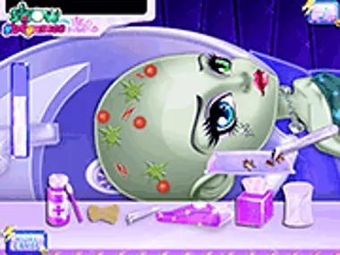 С волосами Фрэнки Штейн что-то не так. Теперь она в кабинете врача на осмотре. Выступите в роли доктора, чтобы помочь ей вылечить ее волосы и кожу головы. Сначала вымойте ей волосы и высушите их, а затем вам нужно будет обрезать все ее волосы для осмотра. Убейте бактерии на коже ее головы и используйте жидкое лекарство и ватную палочку, чтобы уменьшить воспаление. После этого используйте медицинский инструмент, чтобы проверить переломанные части ее головы, и забинтуйте ее сломанные кости черепа. В-третьих, осмотрите кожу ее головы под увеличительным стеклом. Убейте эти вредные бактерии и полностью вылечите поврежденные участки ее кожи. Наконец, выберите для нее новую прическу и цвет и покажите нам.