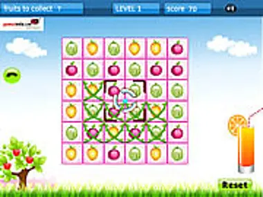 Form squares of four similar colored fruits to eliminate them, get points and increase the time limit. Collect required number of tied fruits to advance to next level.
