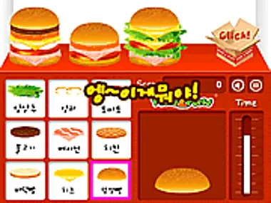 Look out! You've got to make hamburgers. Take a look at the ingredients and put them together one at a time to make each hamburger delicious. When you're done click on the box.