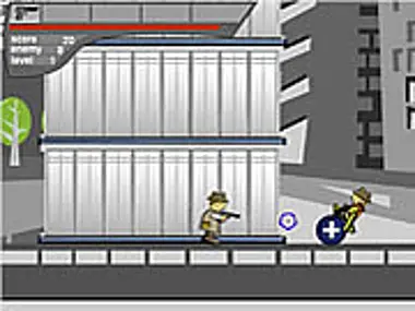 Walk and jump around each level and shoot the enemies. Grab their weapons, health and ammo.