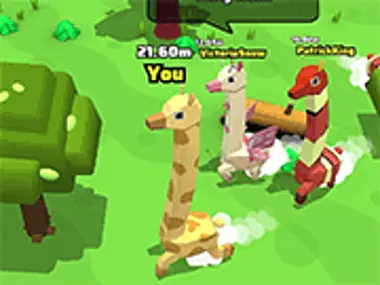 Giraffe Battle IO — это динамичная игра на выживание, где вы соревнуетесь, чтобы вырастить самого высокого жирафа! Ешьте как можно больше фруктов, чтобы дотянуться до высоких деревьев, но будьте осторожны — территория со временем сокращается! Не упадите, когда земля исчезнет! Оставайтесь выше своих соперников, чтобы заработать больше самоцветов и разблокировать крутые скины. Сможете ли вы стать самым высоким выжившим?