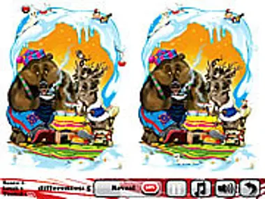 Find the five differences between the two pictures. Good art work, relaxing effect.