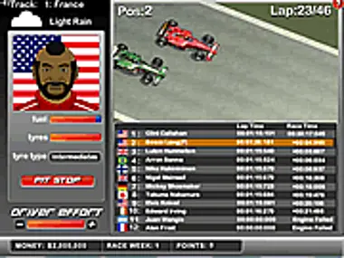 Pawn the competition! Manage your own team: select drivers, cars, grid girls, choose events and drive fast! While your car runs, be prepared to make it go the fasta - w/keyboard!