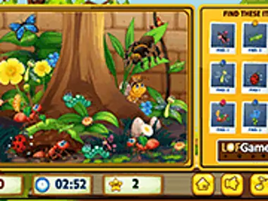 Hidden Objects Insects — это головоломка, игра в жанре «поиск предметов» (point and click) для развития вашего мышления. Вам нужно найти все предметы, перечисленные на картинке в левой части экрана. Вам нужно найти такие же части на левой картинке и использовать острый глаз сыщика. Приятной игры!