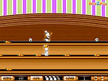 The King and the Queen of rabbits are ready for a carrot hunt. Make them pick the carrots as soon as they can. Make the King pick the carrot to be collected by the Queen to earn points. Make sure that they are not hit by the obstacles such as balls, books, etc that changes level by level. Your score gets increased according to the carrots you grab. You lose life when you are hit by any obstacle and when all your life gets over your game gets over. Complete each level successfully to win.