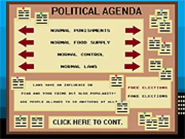 Теперь вы президент. Вам решать, хотите ли вы быть любимым всеми или тираническим диктатором! Тщательно выбирайте, как вы будете вести свою политику. Каждое неверное решение может стоить вам работы!