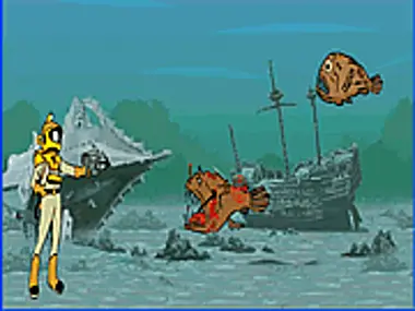 Help Captain Nemo retrieve the Nautilus' power source before being eaten by killer fish.