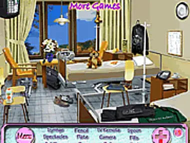 There is a complete chaos in the hospital where nurse Suzy has got a job. But Suzy does not disregard this, she will find the things that were lost a lot of time ago and put a place in order! Your task is to help the nurse to bring order to the hospital. You have a list of object that should be found, click at the object with mouse and it will disappear. When all object are found you will escape the room and pass to the next. In case you failed to find the object use Hint bonus.