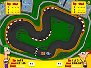 In this funny cartoon style racing game you can design your own racing car by pushing the several car parts together. Once done you can take out your new car and race on the topdown race track against a smart computer or another player opponent.