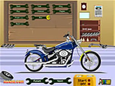 Design your own motorcycle, and then take it for a ride! Click on the wrenches to see the different bike options. Click on up or down to raise and lower the bike. When you're done, click Start to rev up your bike and then click Next to choose the background for your ride.