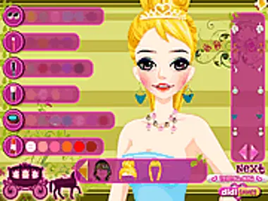 Do you know the story of Cinderella? Cinderella was a girl who had to work hard for her angry stepmother. She also had two stepsisters who hated her. One day the prince of the country they lived in sent an invitation to all the young girls to come to his ball. Cinderella could not go because she had no ball gown. But then her fairy godmother appeared and with a flick of magic she made a beautiful dress for Cinderella. With a few mice and a pumpkin she made a coach with white horses, so that Cinderella could go to the ball and meet her prince! In this game, you're a kind of godmother to Cinderella: help her find a wonderful dress and give her a beauty makeover.