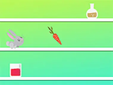 Беги и прыгай, Кролик! Кролик — против дьявольски смертоносной полосы препятствий, полной зомби-зелий, суперострых шипов и других аспектов верной гибели. Конечно, здесь есть аппетитные морковки, которые можно собрать, но ты рискуешь упустить несколько на своем прыгучем пути через три платформы к следующему уровню гадостей.