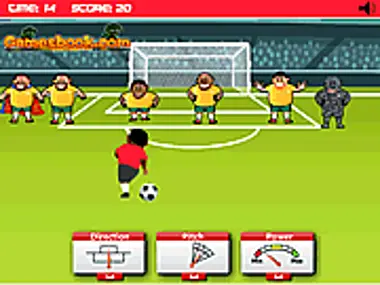 Бить двенадцатиярдовые удары еще никогда не было так весело! Задайте направление, угол и силу своего удара внизу поля и постарайтесь попасть во всех игроков, стоящих перед воротами, пока не истечет ваше время. Удачи!