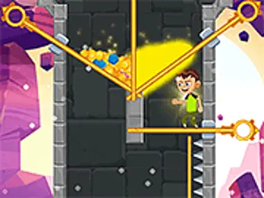Герой начал свое путешествие за сокровищами и чтобы спасти принцессу, но головоломки перед охотником заманили его в ловушку. Вам нужно вытащить штифты в правильном порядке, чтобы герой смог забрать спрятанное сокровище и безопасно спасти принцессу от драконов, волков и монстров.