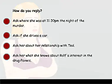 Interrogate Bridget about a suspected murder of a woman and get some answers.