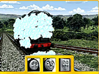 Угадайте, какой паровозик прячется под пеной. Нажмите на лицо того паровозика, который, по вашему мнению, прячется. Продолжайте угадывать: каждая догадка будет открывать паровозик всё больше.