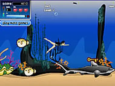 Accompany a friendly scuba diver to search for sunken treasure. Explore the bottom of the ocean, collecting the oxygen tanks to survive in such a difficult atmosphere and dodging sea enemies.