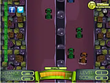 Drive your truck to reach the target distance. Avoid colliding with other trucks. Keep an eye on your truck's health.