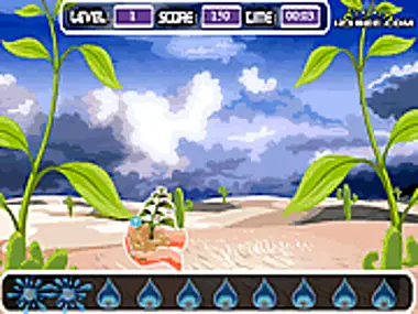 In a desert scene, we have four leaves that provide water drops and which are supposed to be valuable in that scenario.So do not let those drops fall down, and help the small plant to grow. Beware of the black drops which are not good for the small plant. Catch the Power drops too for bonus points.