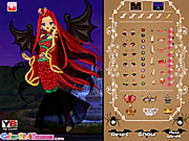 Приближается Хэллоуин, и королева вампиров отчаянно ищет идеальное платье. Вы же так талантливы, не могли бы вы помочь ей создать самое красивое вечернее платье? В вашем распоряжении разнообразные аксессуары, которые вы сможете умело использовать. Вы также можете изменить выражения лица королевы вампиров! Веселитесь!