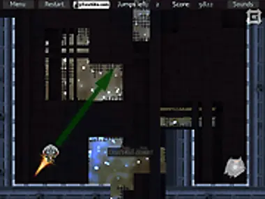 Use the aliens limited thrusters to shoot him across gaps & through blocks to reach the exit.